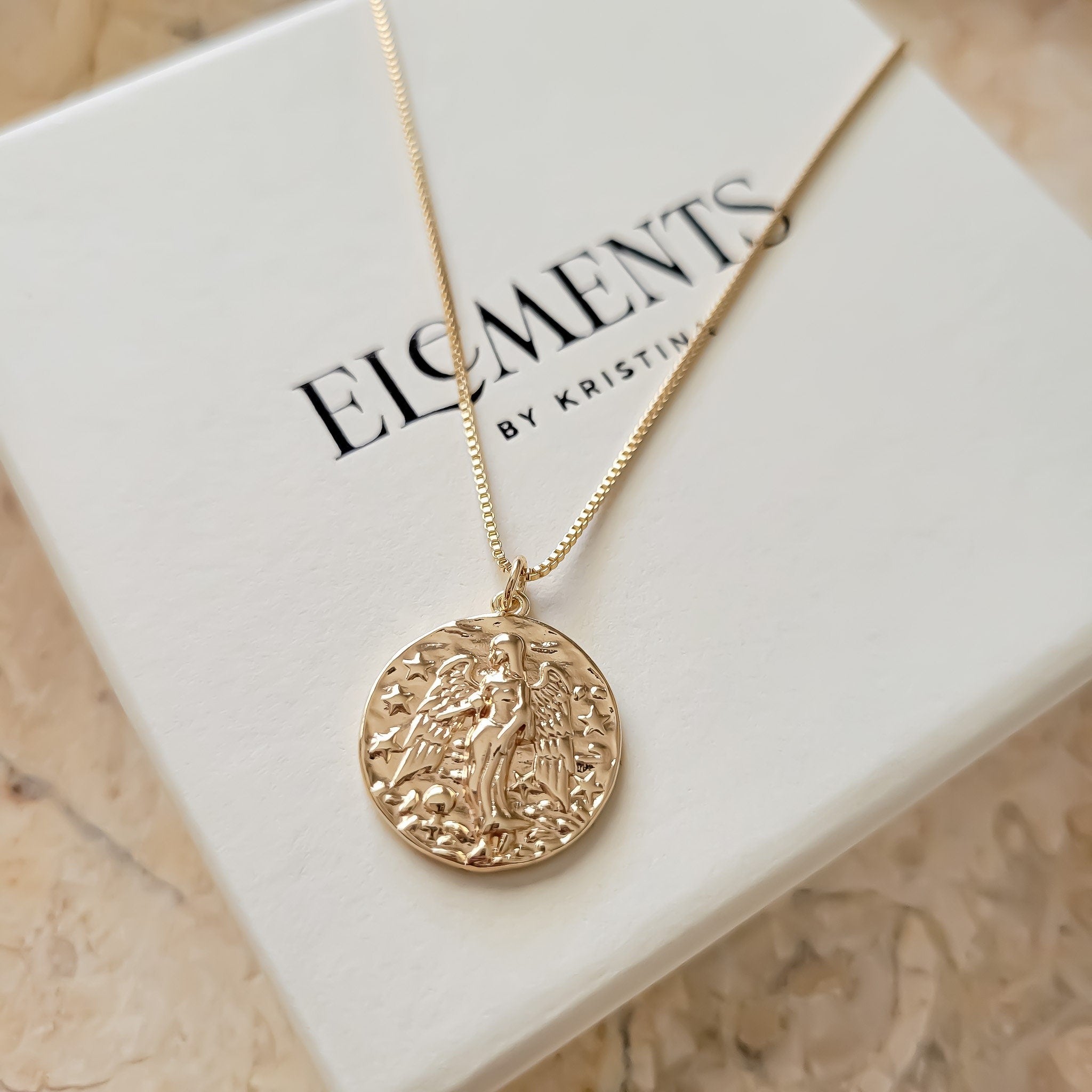 Gold Angel pendant necklace. Wear it on its own or layer it.
