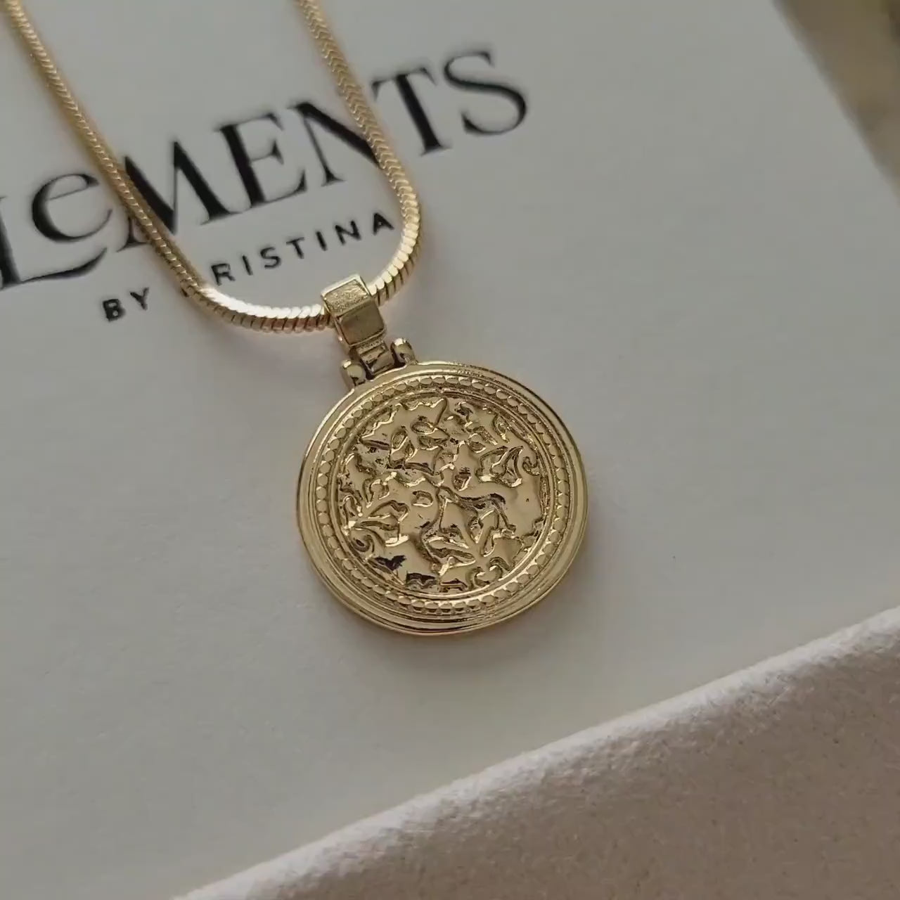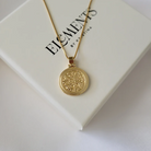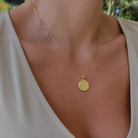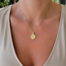 Round gold coin medallion necklace. Wear it on it's own or layer it.