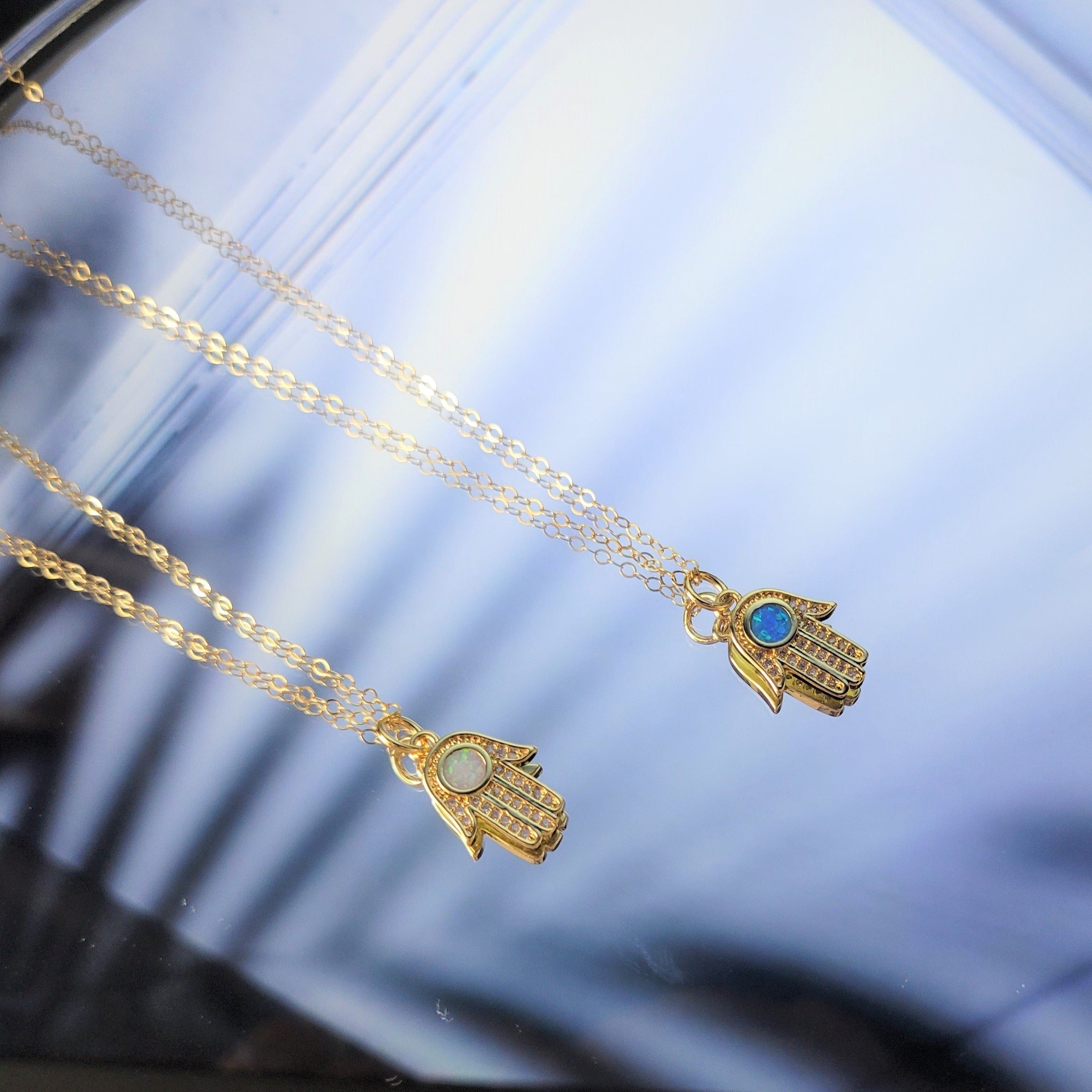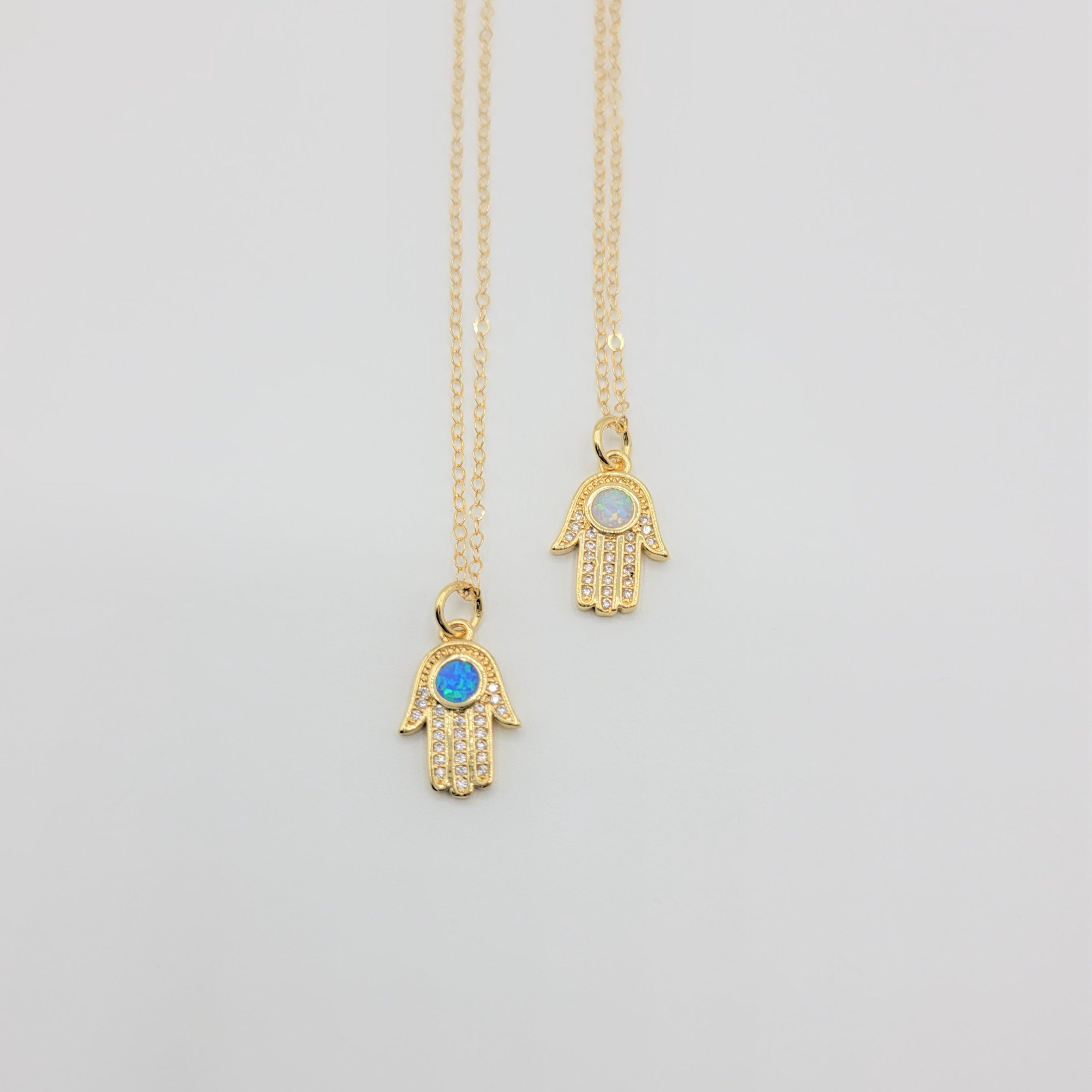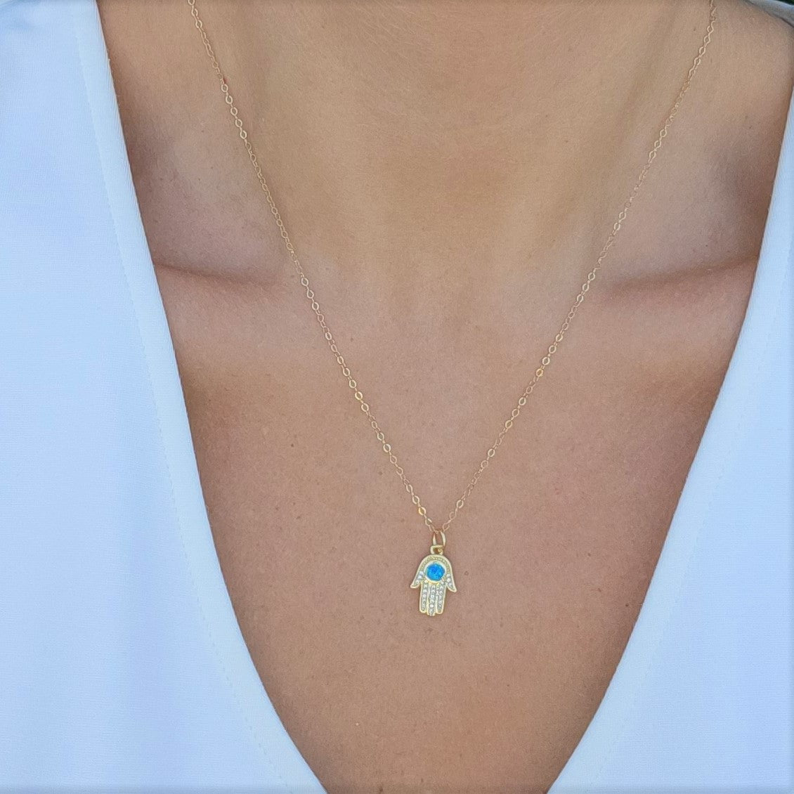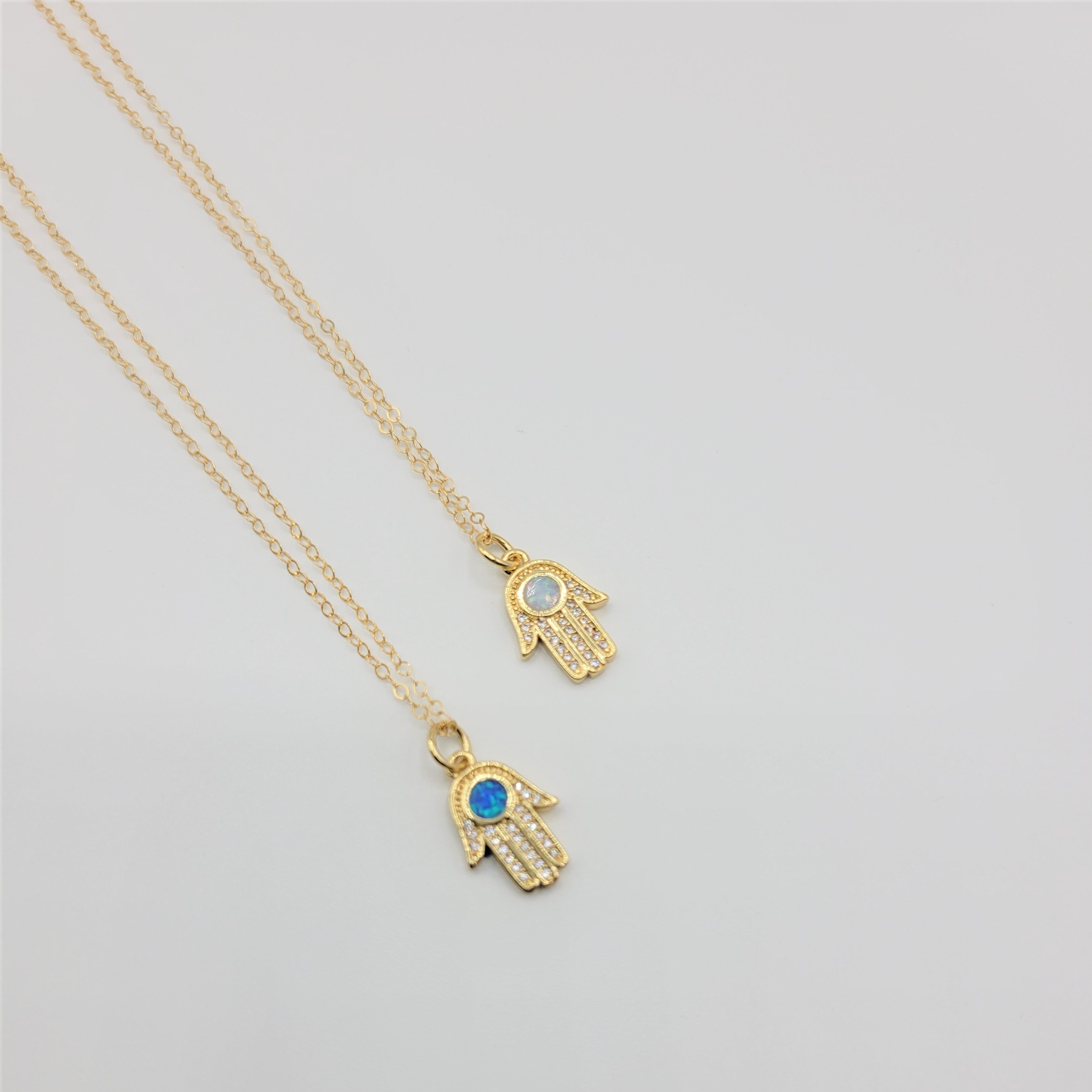 Hamsa hand charm necklace. Wear it on it's own or layer it. Strung on sturdy non tarnish gold filled very dainty cable chain.
