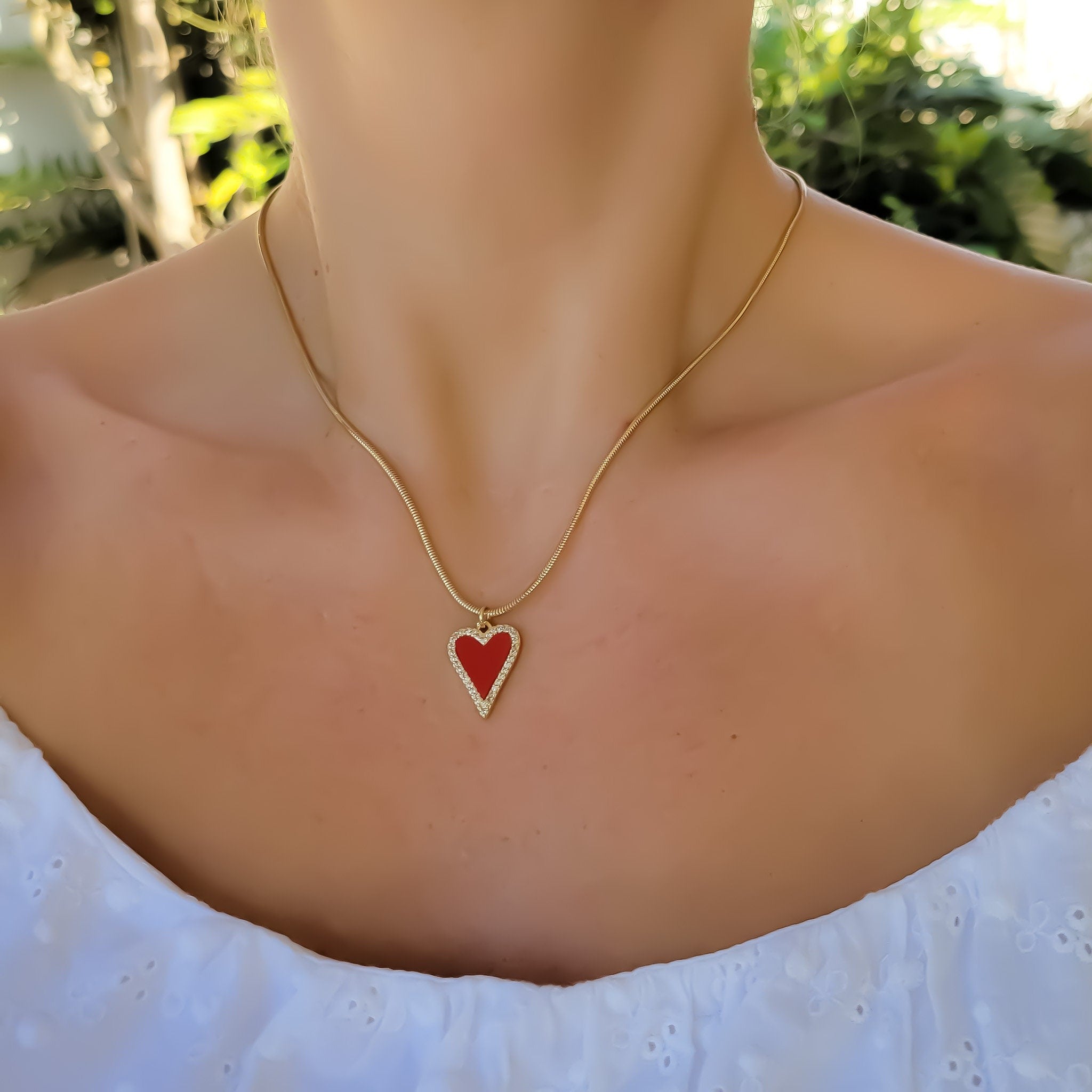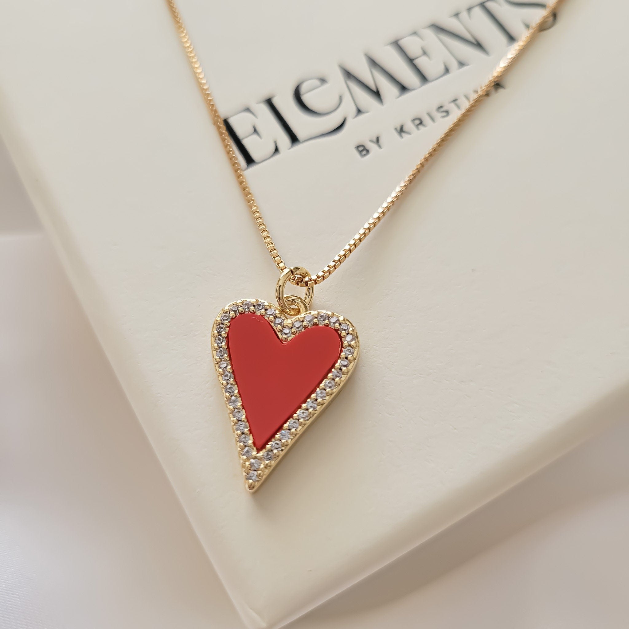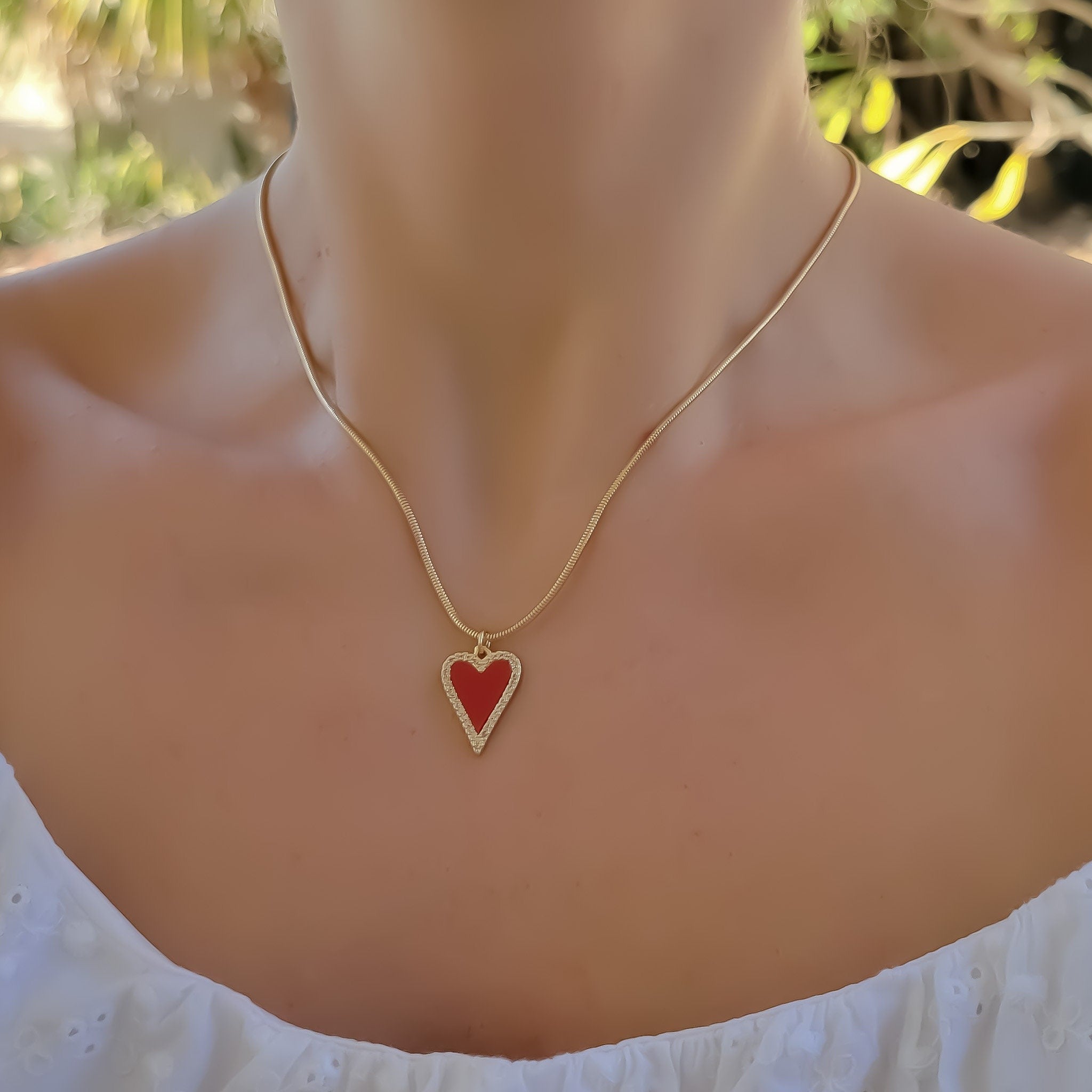 Red heart pendant necklace. Layer it or wear it solo. Crafted on sturdy non tarnish gold filled chain.
