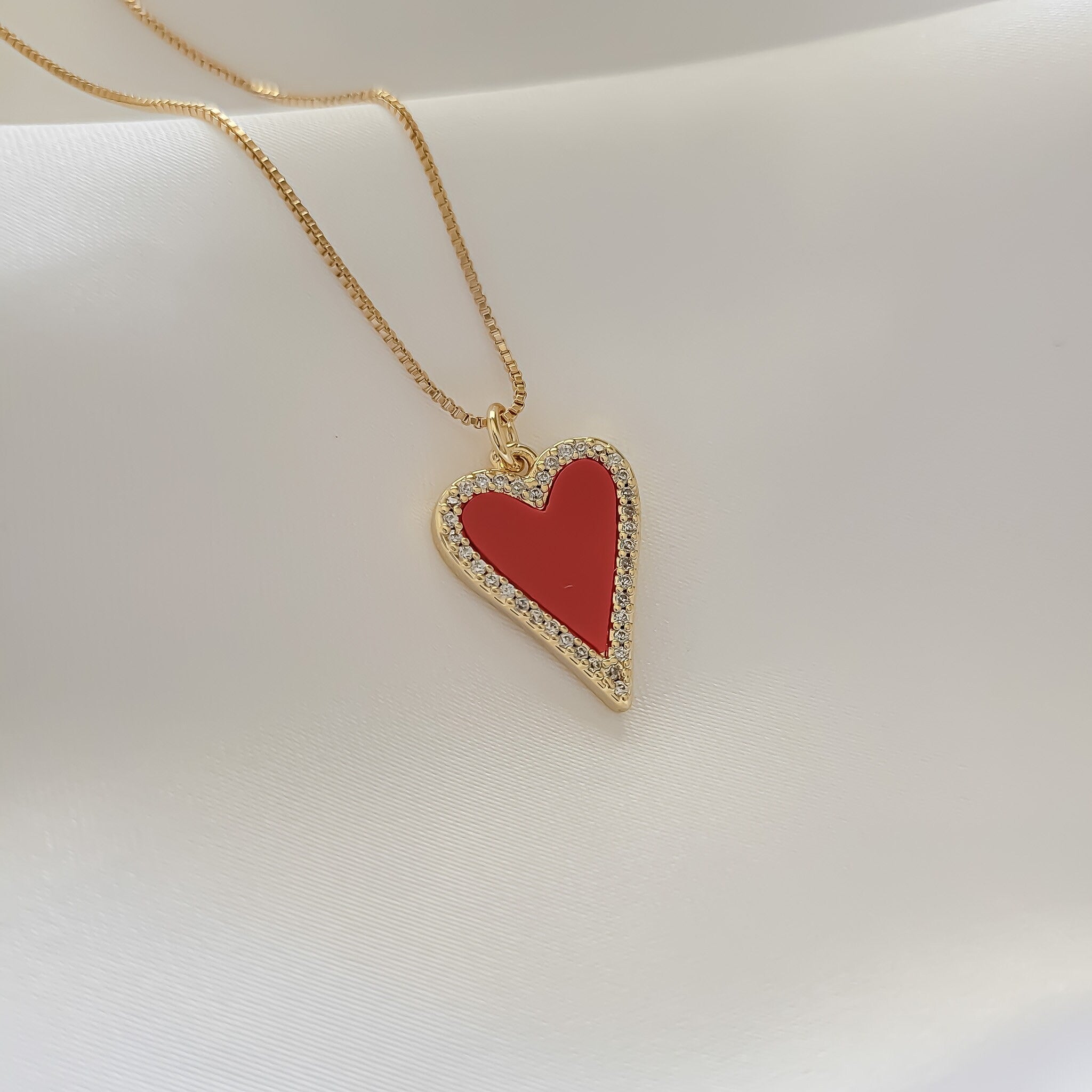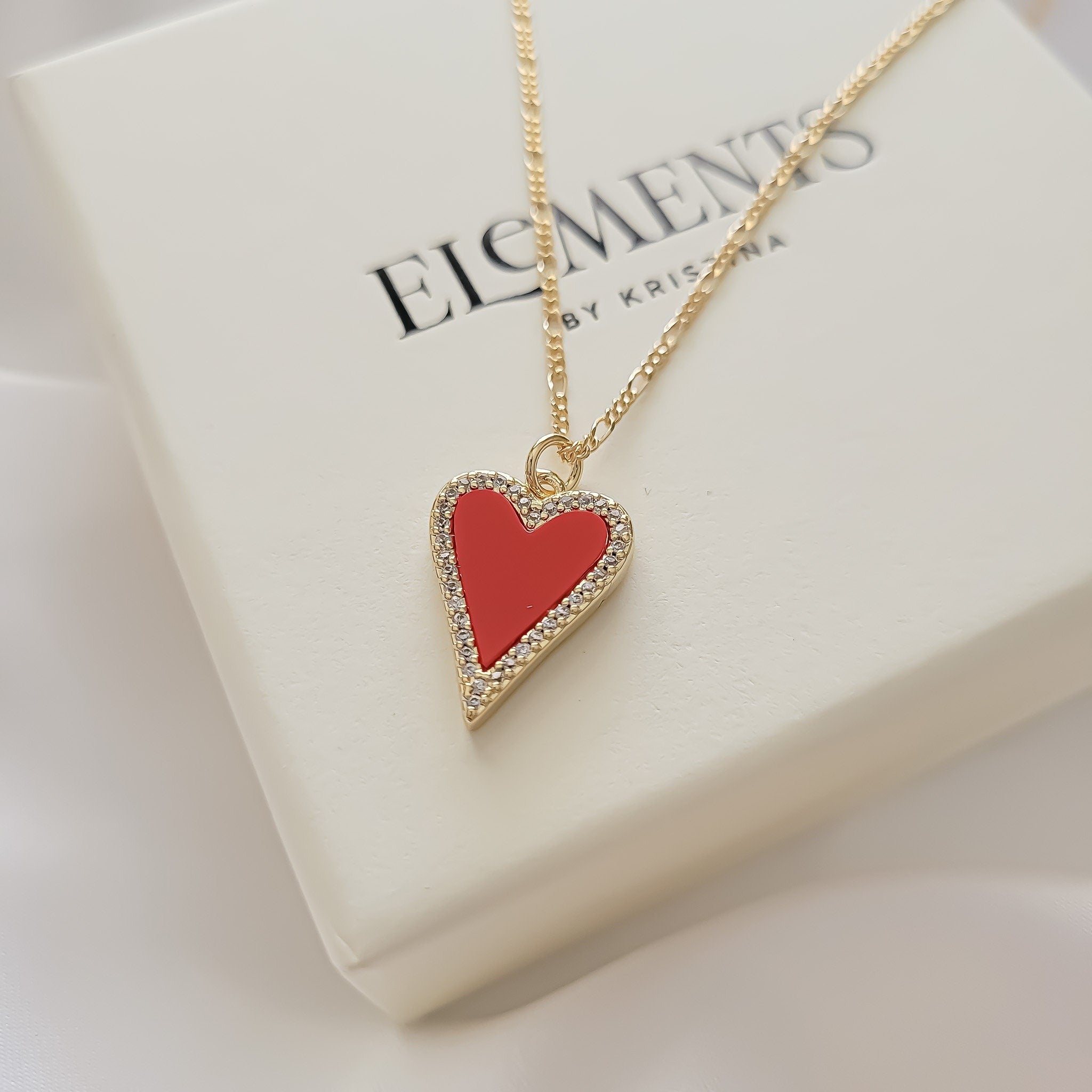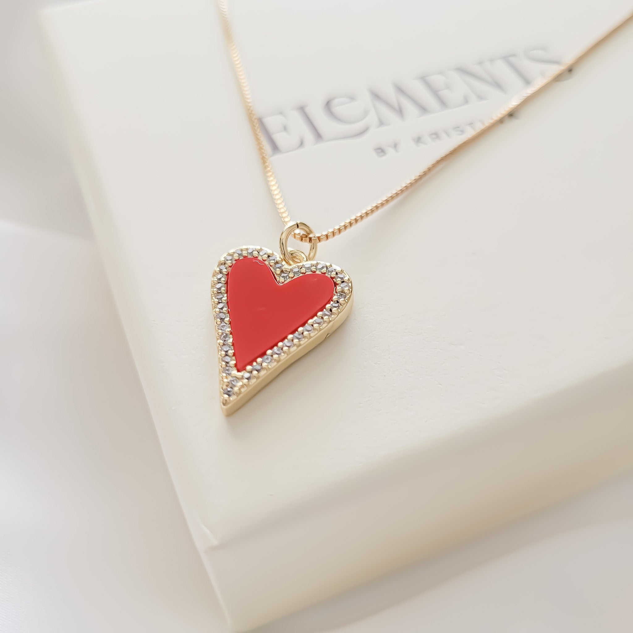 Red heart pendant necklace. Layer it or wear it solo. Crafted on sturdy non tarnish gold filled chain.