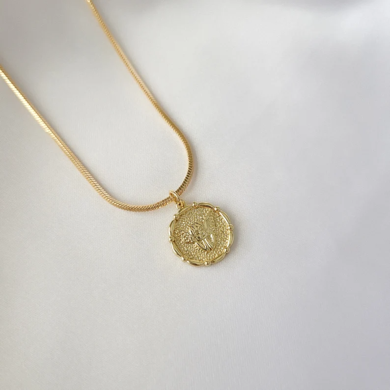 Gold cherub pendant necklace. Wear it on it's own or layer it.