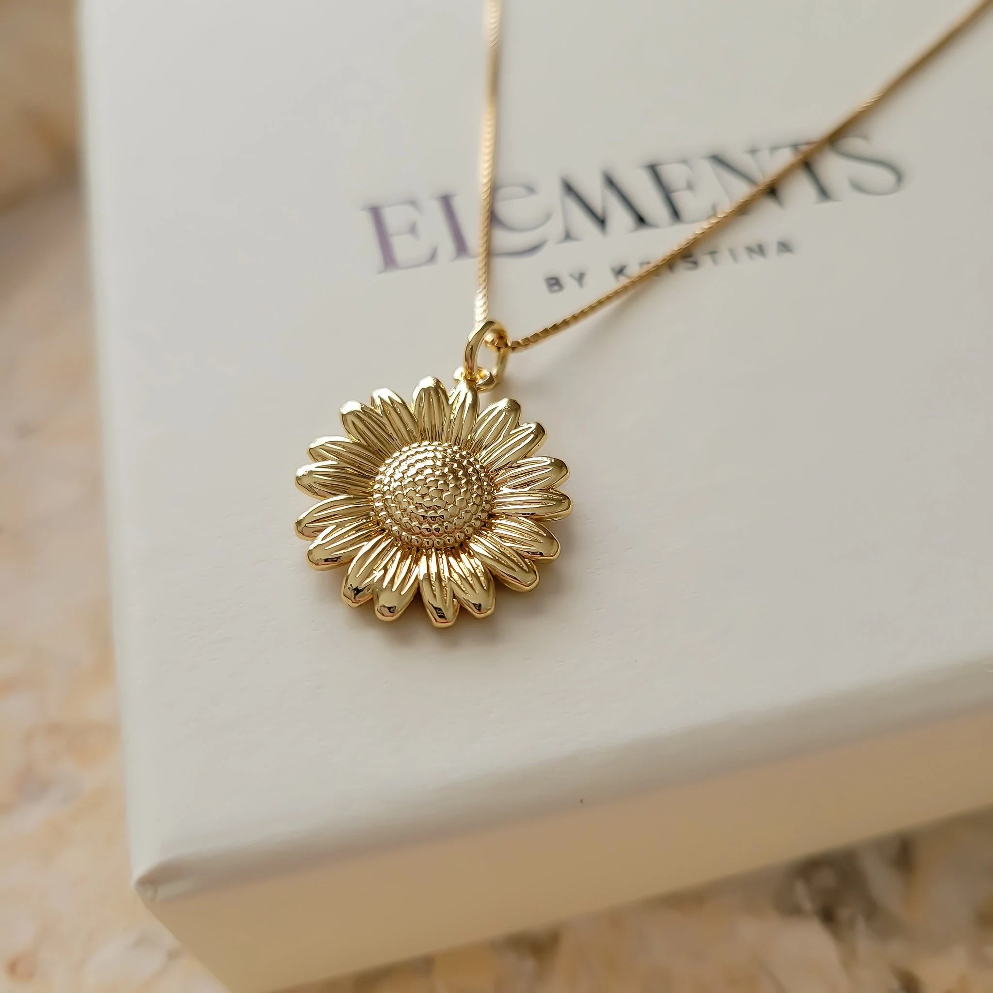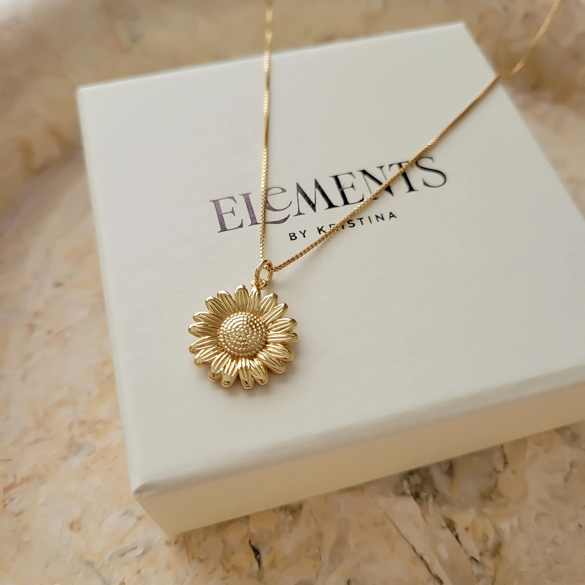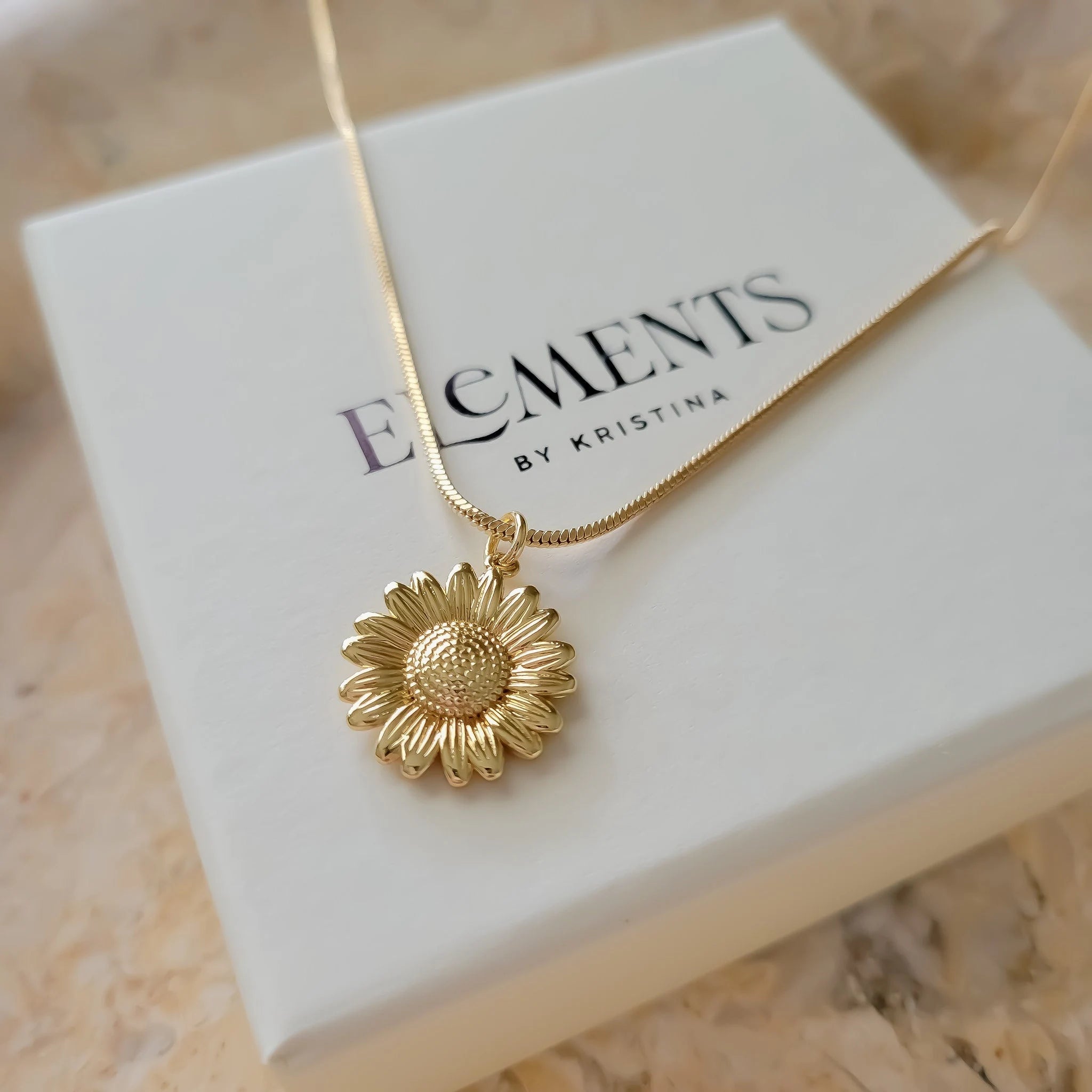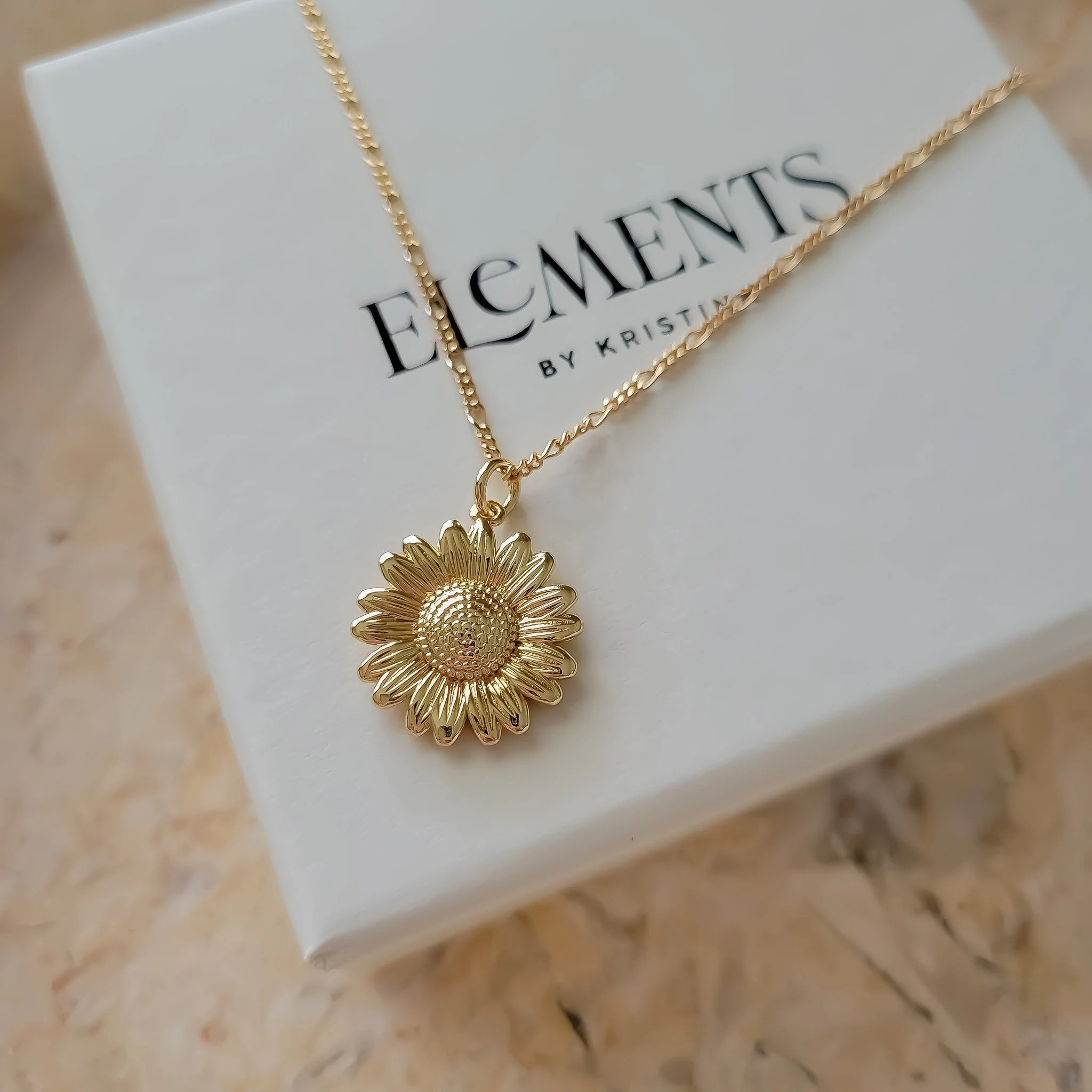 Sunflower pendant necklace. Layer it or wear it on its own. Crafted on sturdy non tarnish gold filled box chain.